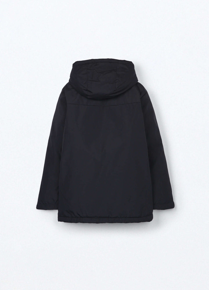 - Parka con cappuccio e chiusura full zip a collo alto.