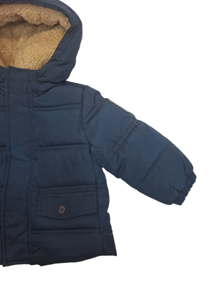 - Parka imbottito con due tasche ad aletta e bottone sul davanti.