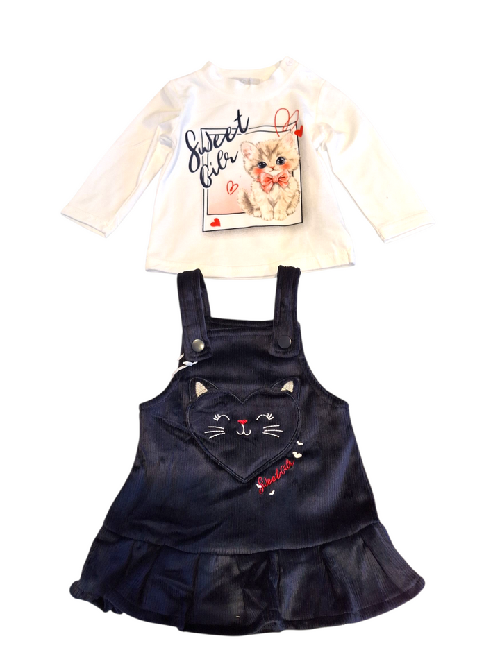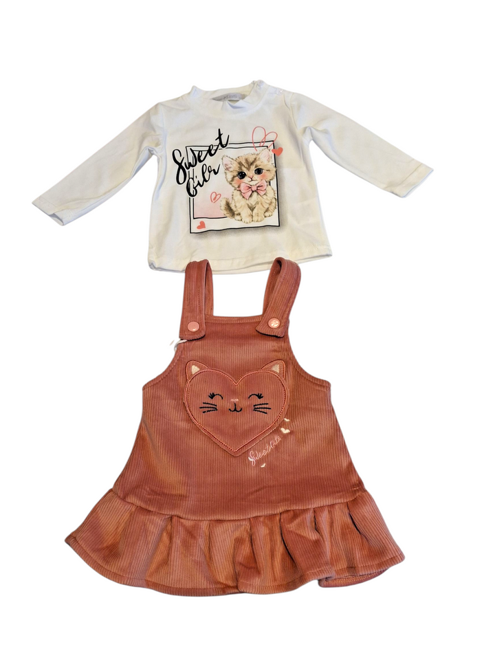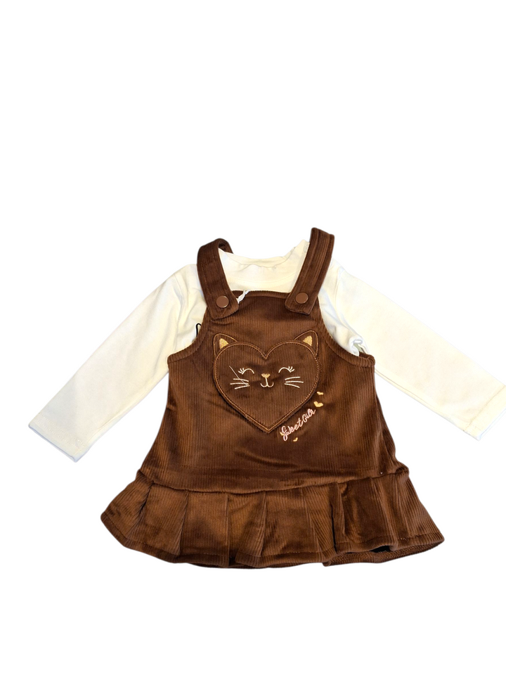 Unisciti all'ultima tendenza con la nostra salopette in velluto con cuore sul davanti. La t-shirt fantasia abbinata completa il look con stile. Perfetta per le amanti della moda, donerà un tocco originale e romantico al tuo outfit. Non lasciartela sfuggire.
