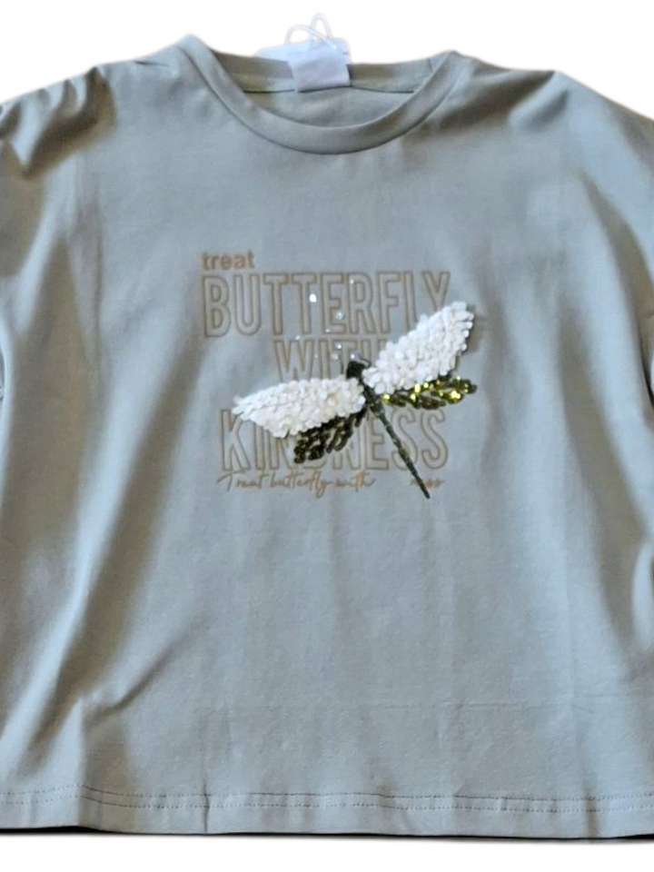 Questa T-shirt con maniche lunghe è perfetta per le femminucce grazie alla stampa centrale di farfalla, che aggiunge un tocco di stile al look. Realizzata con materiali di alta qualità, garantisce un comfort duraturo e un'ampia possibilità di abbinamenti per un look unico e alla moda.