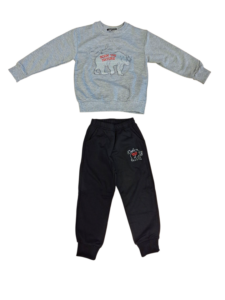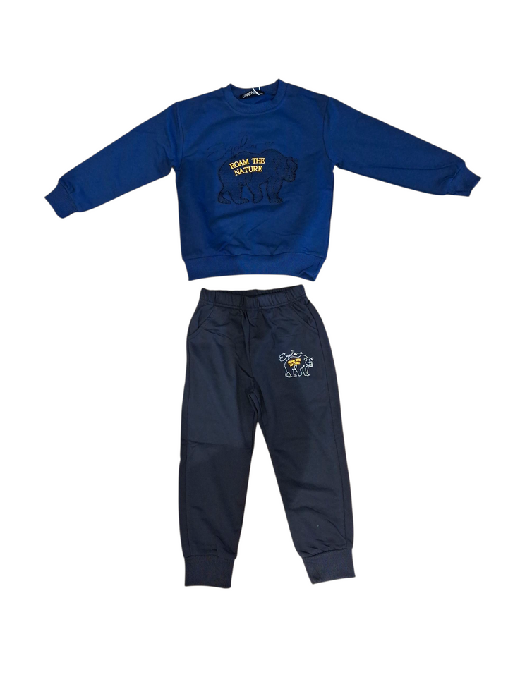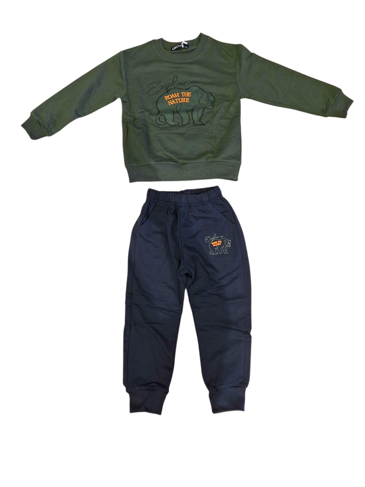 Questa tuta girocollo per maschietto è morbida e calda grazie al suo tessuto felpato. Il perfetto mix tra stile e comfort per il tuo bambino. Ideale per le giornate più fresche, la tuta garantisce un look alla moda e una sensazione di calore e morbidezza sulla pelle.