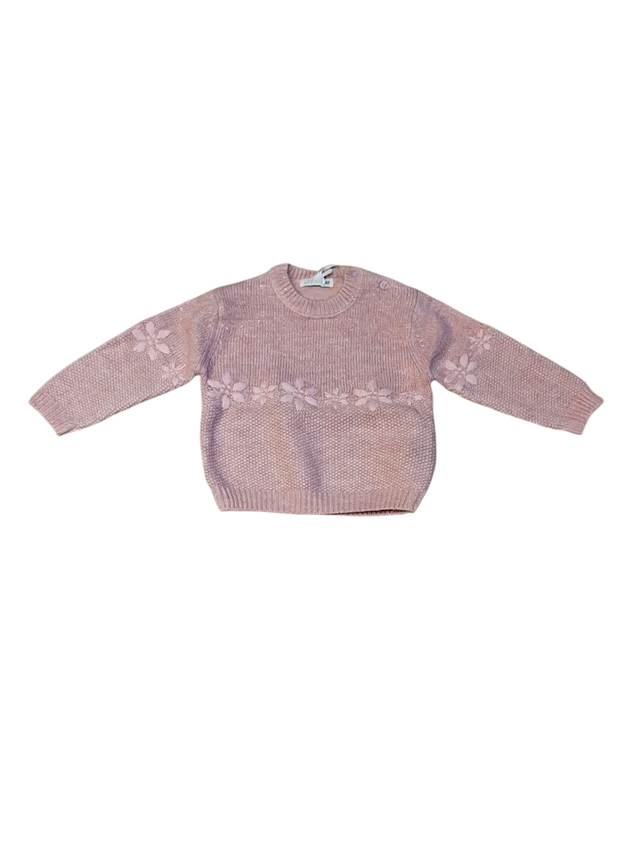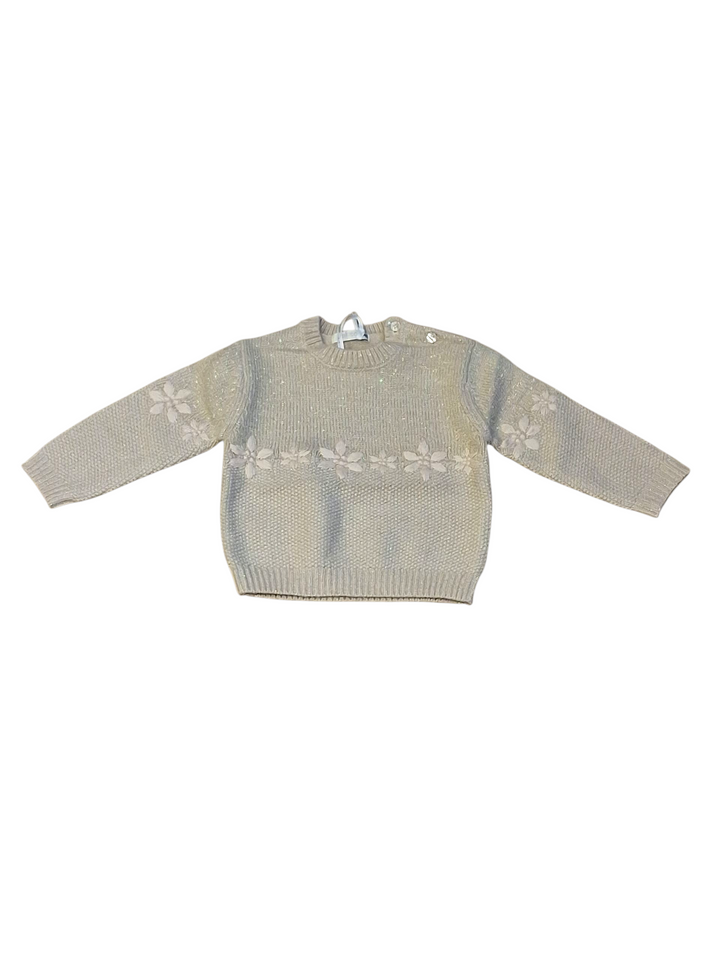 Questo dolce e glamour maglioncino girocollo è perfetto per le femminuccie che vogliono essere alla moda. Realizzato in tessuto lurex e decorato con un bellissimo motivo a fiori, donerà alla tua bambina un'aspetto elegante e sofisticato. Il complemento ideale per un outfit unico e luminoso.