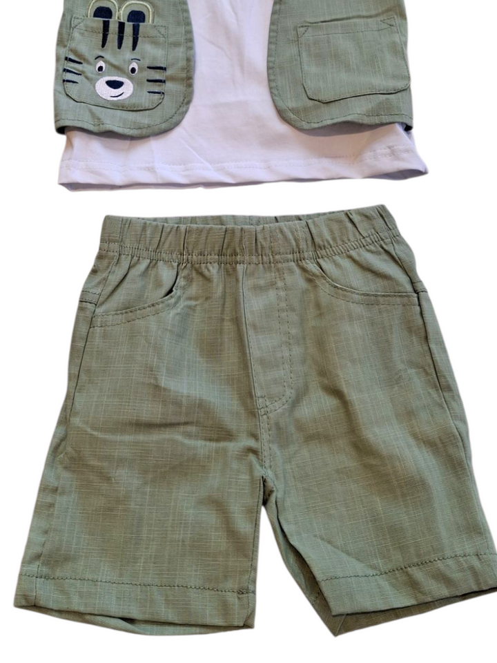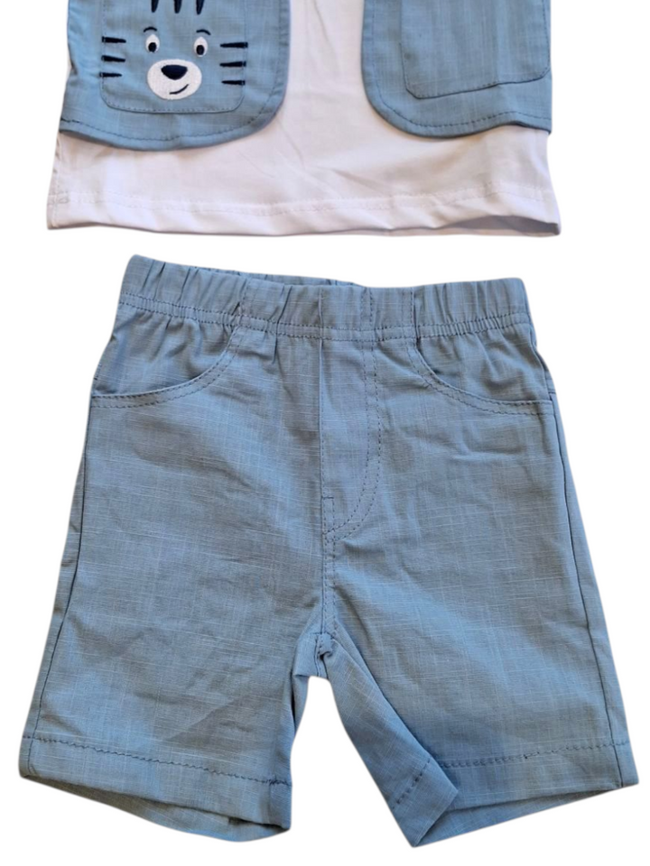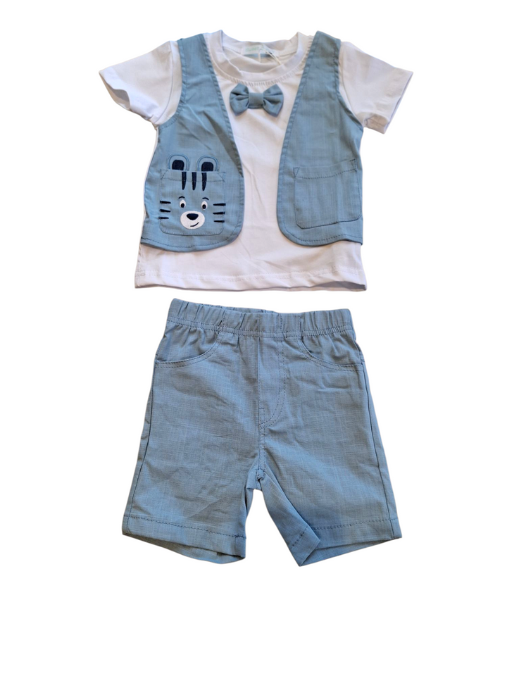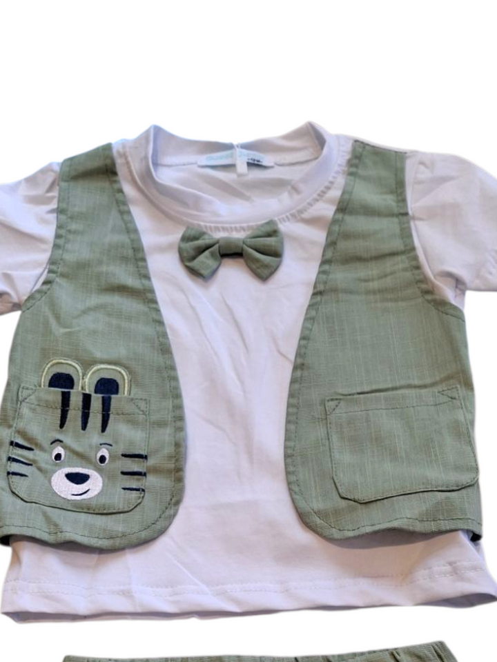 Questo completo per maschietto è un'ottima scelta per un'occasione speciale. La T-shirt ha un finto gilet e un elegante papillon, mentre i bermuda sono comodi e pratici da indossare. Con questo outfit, il tuo bambino sarà vestito alla moda e comodo allo stesso tempo.