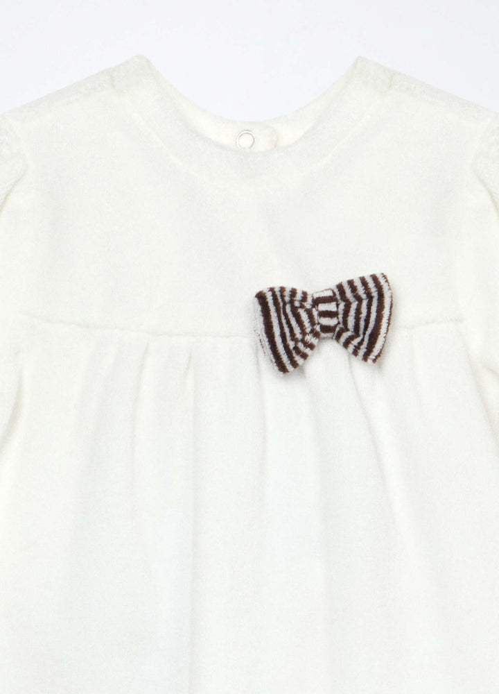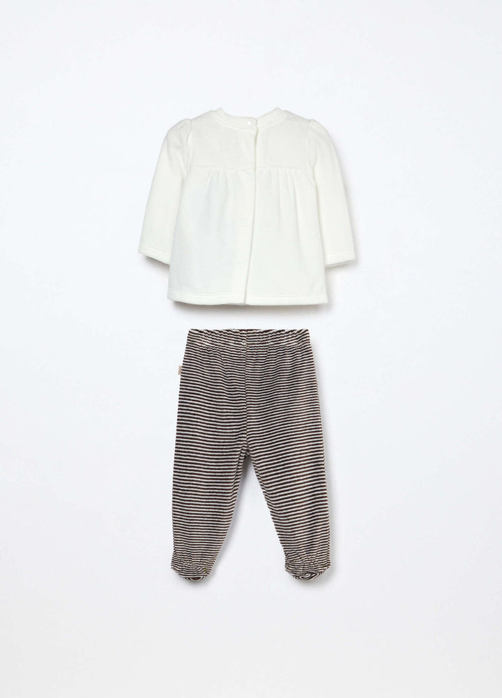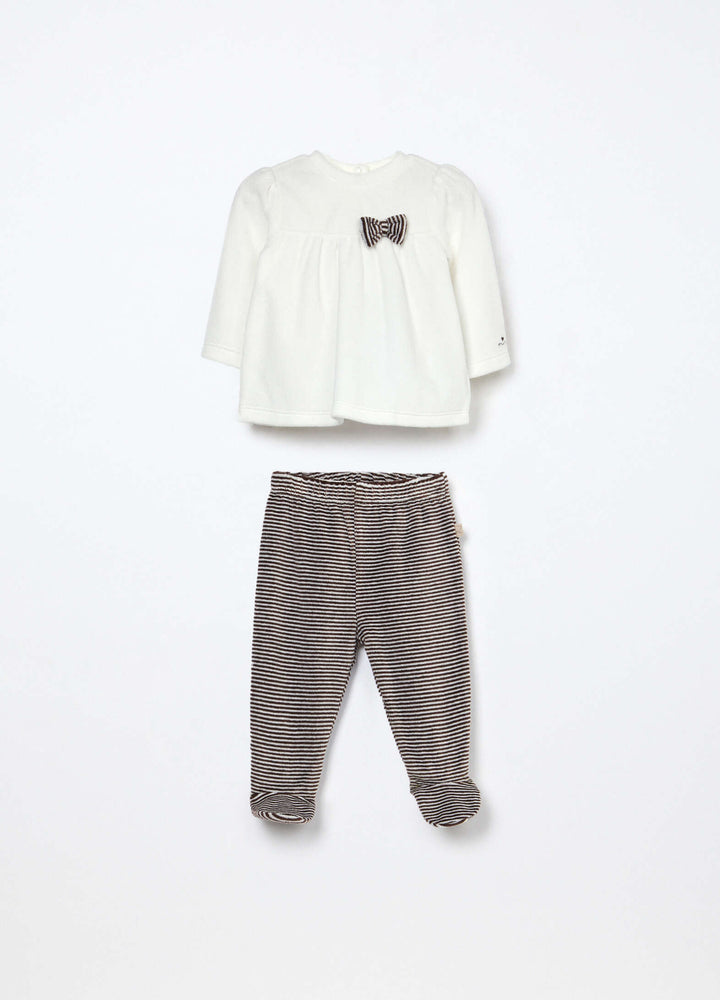 - Set in misto cotone velours composto da top girocollo con maniche lunghe e fiocco applicato.