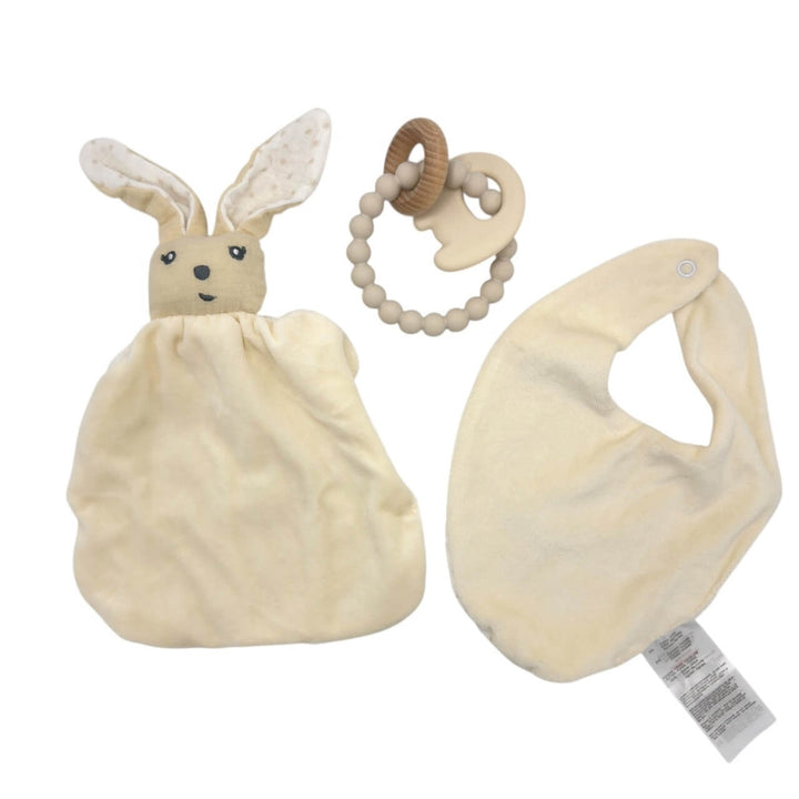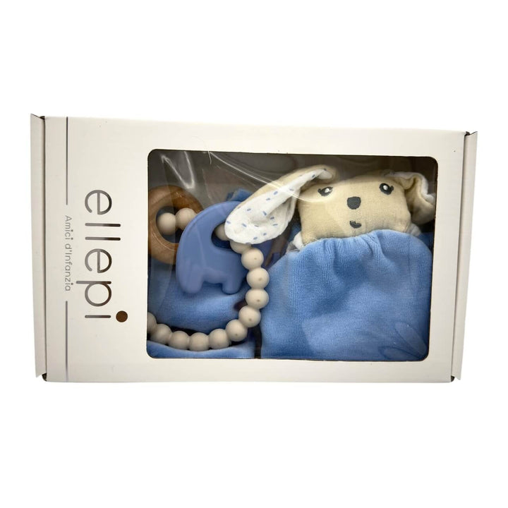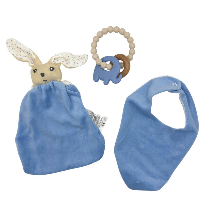 🎁 SET REGALO NASCITA COMPLETO 3in1 - Include doudou per coccole, bavaglino essenziale e massaggia gengive sicuro. Regalo ideale per neonati maschio o femmina, apprezzato come regalo nascita bimbo o bimba.