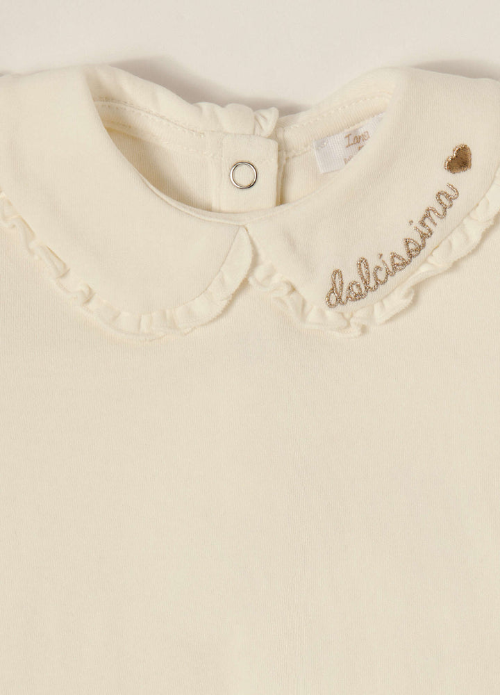 - T-shirt con colletto Peter Pan lavorato con ricamo.