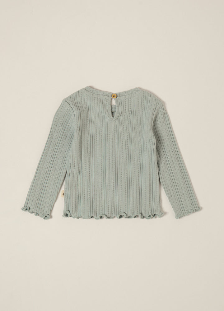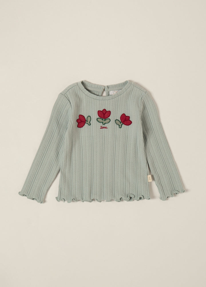 T-shirt a maniche lunghe verde con fiori ricamati