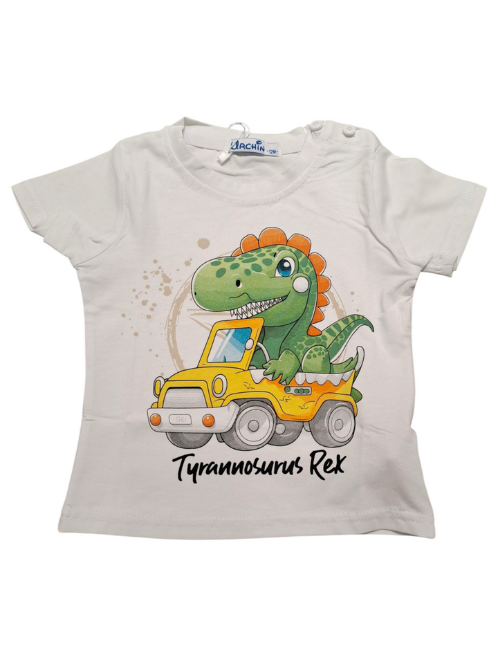 Questa T-shirt presenta una divertente stampa di un draghetto sul davanti, perfetta per i piccoli fan dei dinosauri. Realizzata in morbido cotone, offre comfort tutto il giorno a tuo figlio. Aggiungi un tocco di fantasia al guardaroba dei tuoi bambini con questa T-shirt unica.