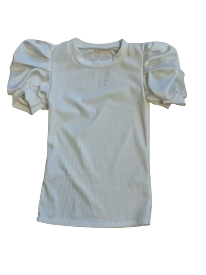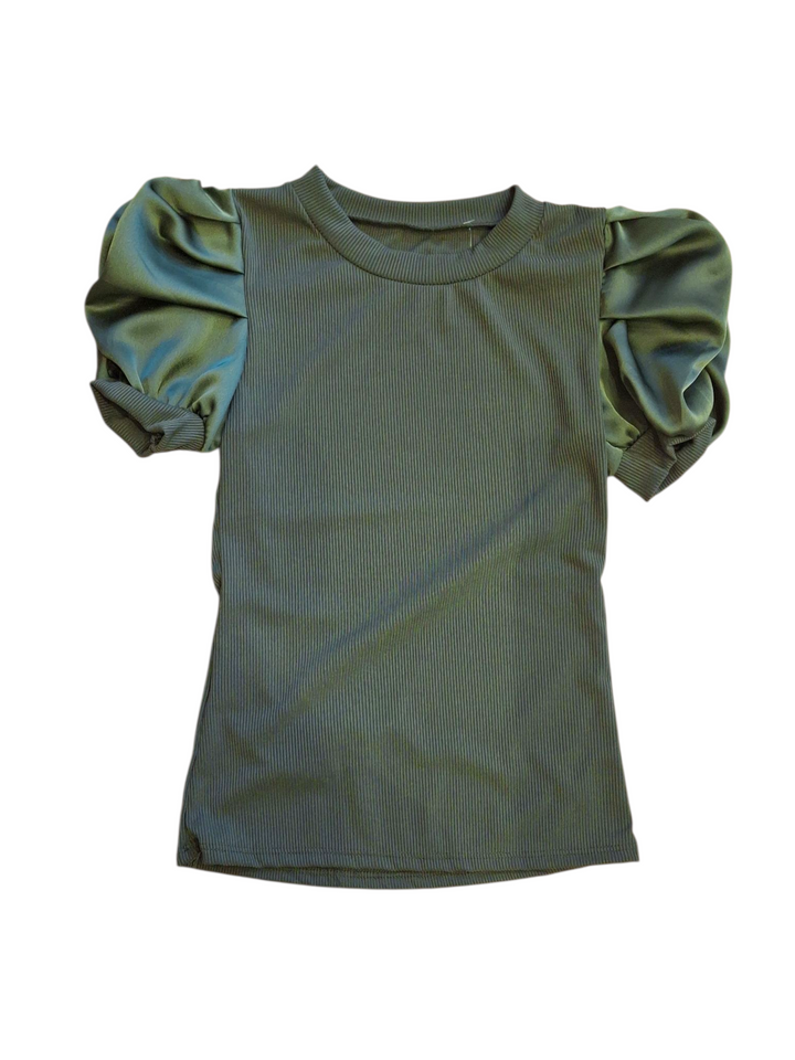 Questo T-shirt è un capo d'abbigliamento elegante e alla moda che si distingue per le sue costine e la manica a sbuffo di raso. La sua combinazione di tessuti e dettagli unici offre un aspetto sofisticato e confortevole. Perfetto per aggiungere un tocco di femminilità a qualsiasi outfit.