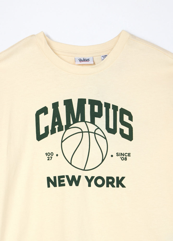 • T-shirt in jersey di puro cotone con stampa sul davanti