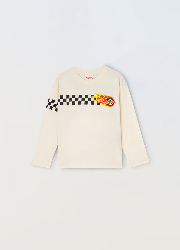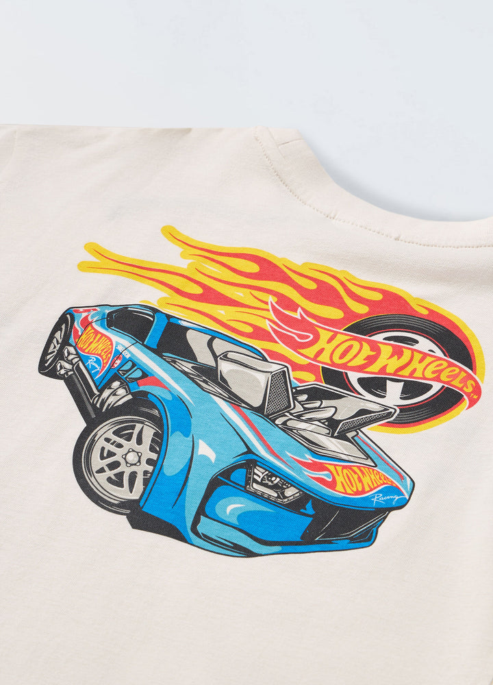 - Girocollo in costina e stampa Hot Wheels sul davanti