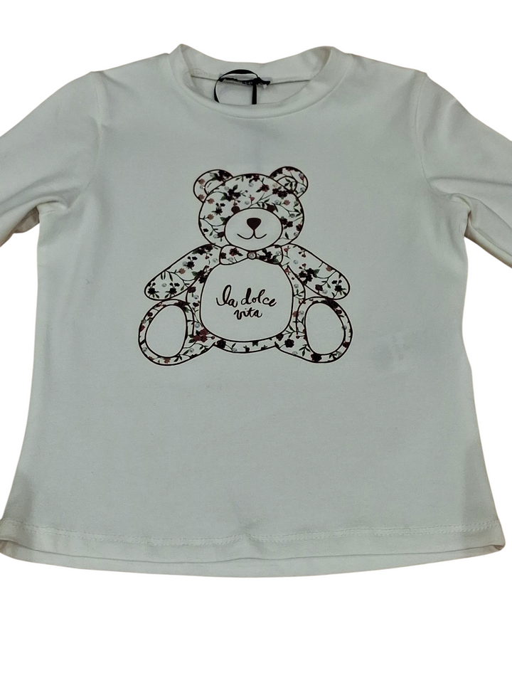 "Aggiungi un tocco di carineria al guardaroba della tua femminuccia con questa maglietta a manica lunga con una stampa centrale di un dolce orsacchiotto. Realizzata in morbido cotone per un comfort duraturo, questa maglietta completerà il look giocoso e dolce della tua bambina."