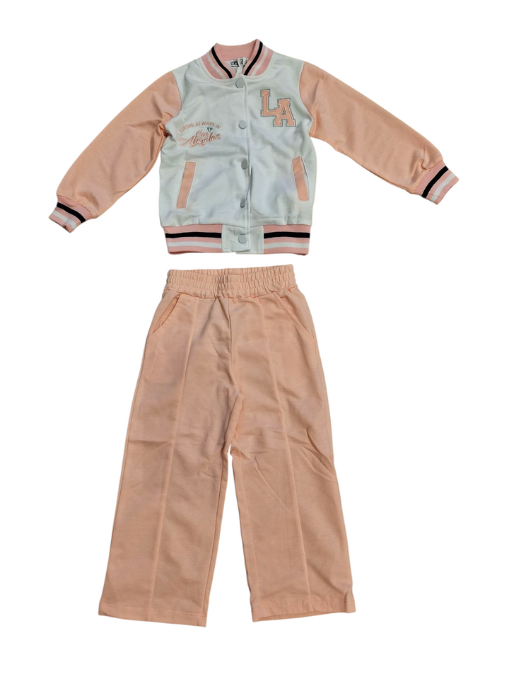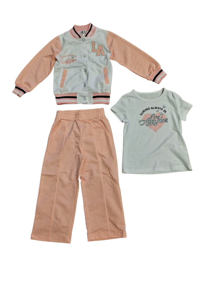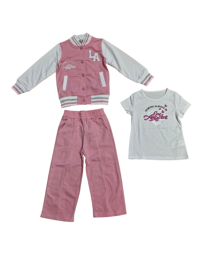 Questa tuta 3 pezzi, composta da una felpa modello college, una t-shirt a mezza manica e un pantalone a palazzo, è perfetta per la tua femminuccia. Confortevole e alla moda, ideale per ogni occasione. Completamento unico per il suo guardaroba.