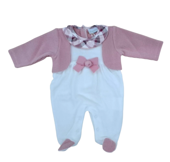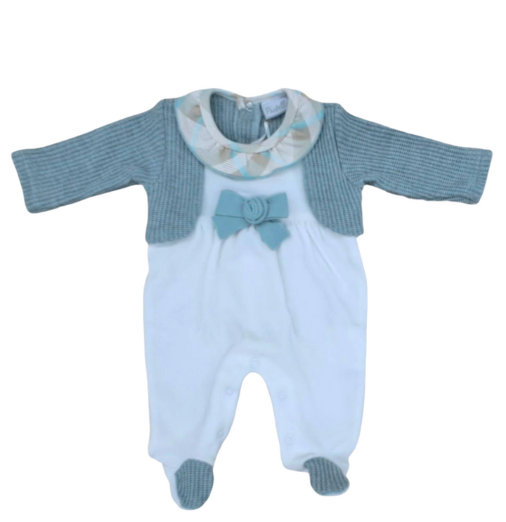 Questa tutina neonata è dotata di un colletto a fantasia e un finto coprispalle, ideale per le giornate più fredde. Realizzata in morbida ciniglia, garantisce comfort e protezione alla pelle delicata del tuo bambino. Con un design elegante e funzionale, è perfetta per qualsiasi occasione.