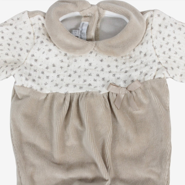 Questa tutina in ciniglia per femminuccia con ricamo è perfetta per mantenere la piccola al caldo e al tempo stesso elegante. Realizzata in ciniglia, è morbidissima sulla pelle delicata. Il ricamo aggiunge un tocco di dolcezza mentre i bottoni sul cavallo la rendono facile da vestire e svestire.