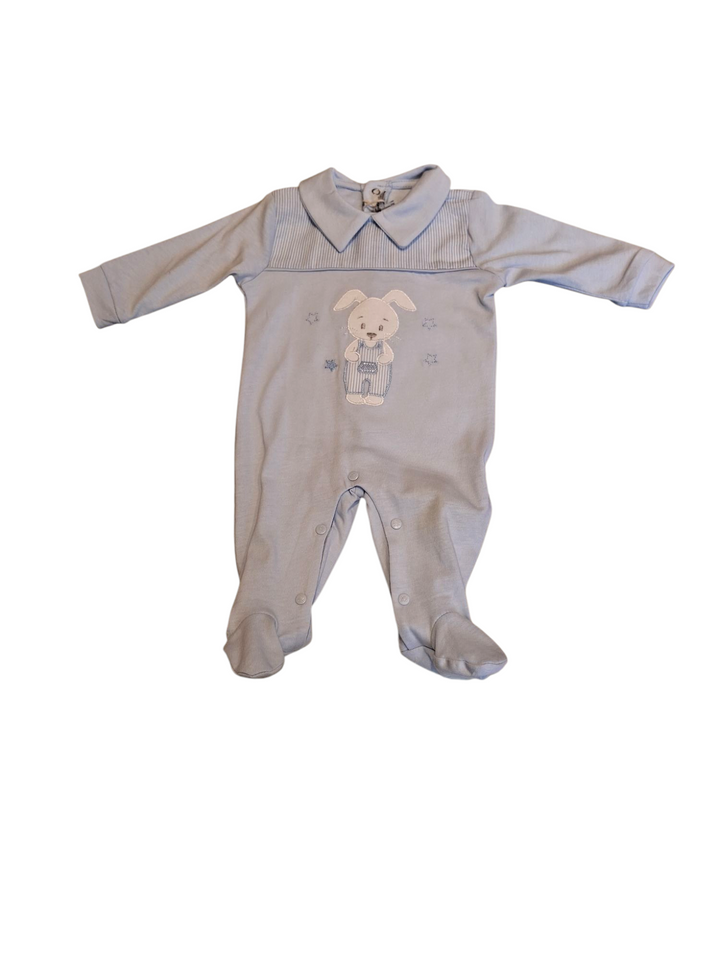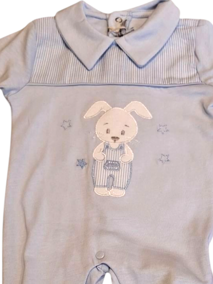 Questa tutina per maschietto è perfetta per ogni occasione. Dotata di un colletto elegante e deliziosamente decorata con un ricamo di coniglietto, questa tutina è anche comoda grazie ai bottoni a pressione sul retro e sotto le gambine. Rendi tuo figlio ancora più adorabile con questa tutina.