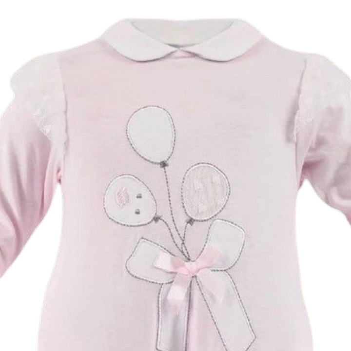 Questa tutina di cotone per femminuccia con colletto è perfetta per far sentire la tua piccola come una principessa. Il ricamo al centro di palloncini raccolti in un fiocco aggiunge un tocco di dolcezza, mentre l'inserto in tulle sulle spalle aggiunge un tocco di eleganza. I bottoni a pressione sul retro e sotto le gambine rendono il cambio del pannolino facile e veloce.